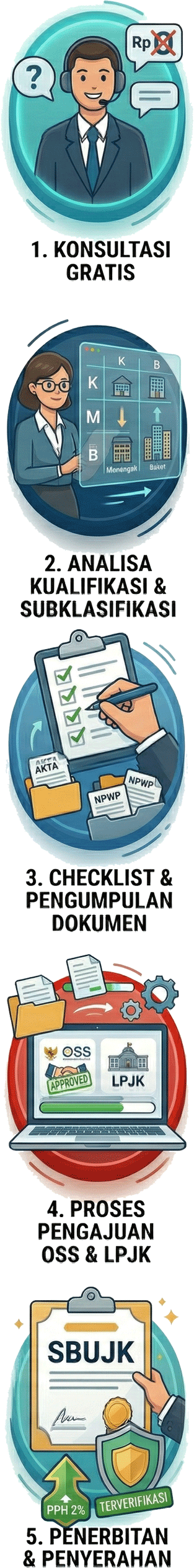 Kami periksa semua surat perusahaan Anda. Jika ada KBLI atau modal yang salah di sistem OSS, kami bantu perbaiki agar jalan ke SBUJK terbuka lebar.